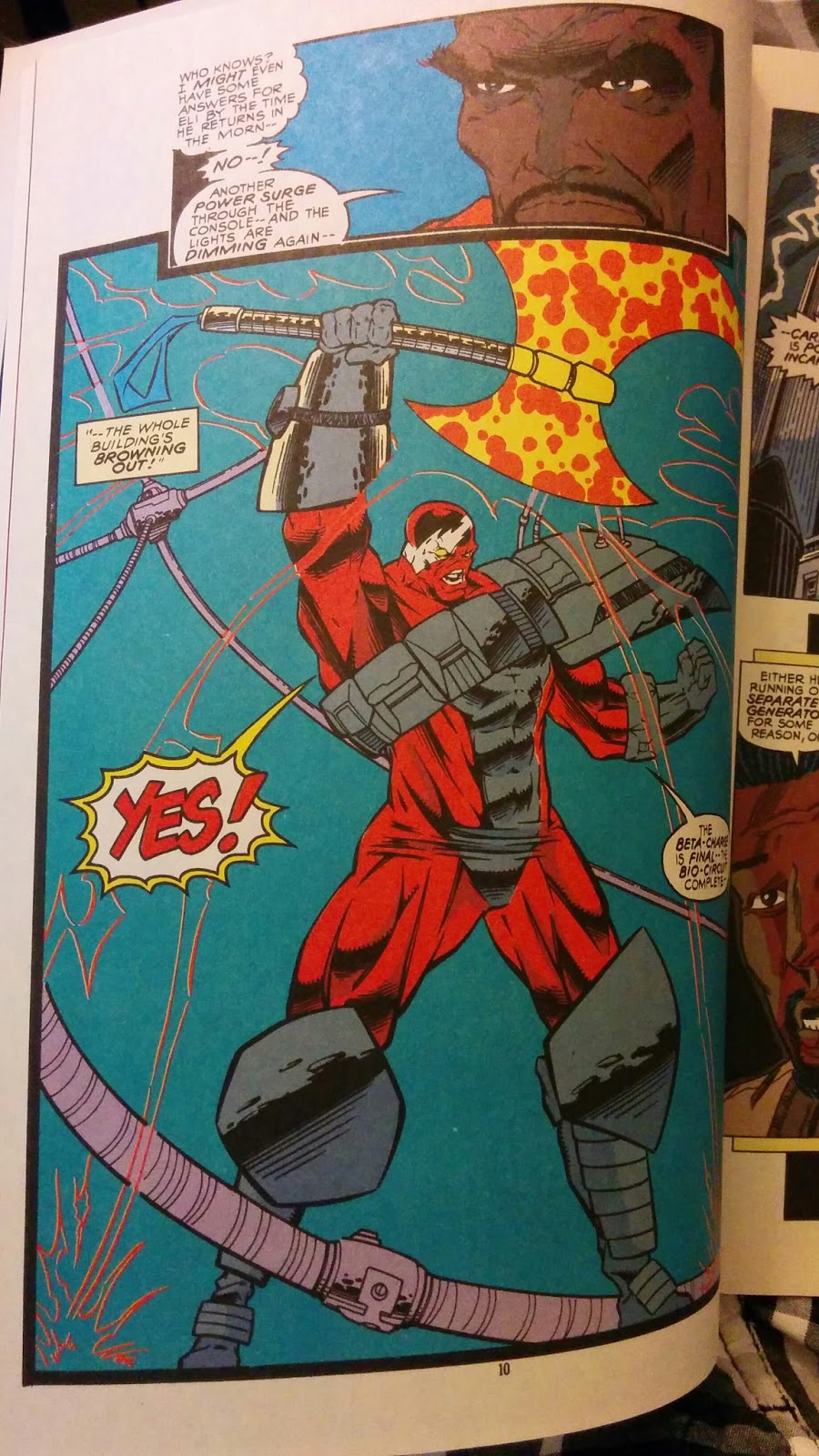 The art is pretty good. Roy Burdine and Grant Miehm do an excellent job with the detailing of the suits. They also know how to make villains look sinister and even give villains weight to show that they can't easily be taken care of. However, the art for women seems to be off. They seem to be lacking any definition what so ever and end up looking like stick figures. These were 90's comics so the quality of the ink isn't too good which doesn't really detract from anything. It's just something I noticed.